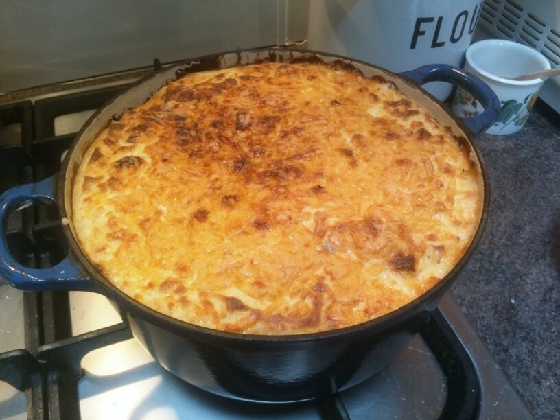 Cross-breed from chickpea moussaka and Julie’s recipe for pasticcio.