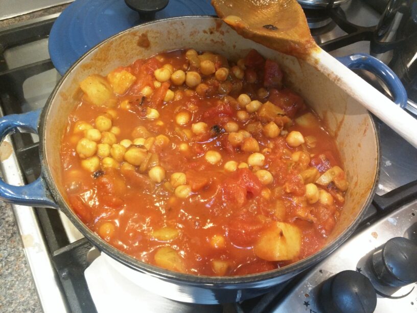 Not really beans on toast at all, but that’s the name that brings it to mind. It’s a chickpea and tomato stew really.